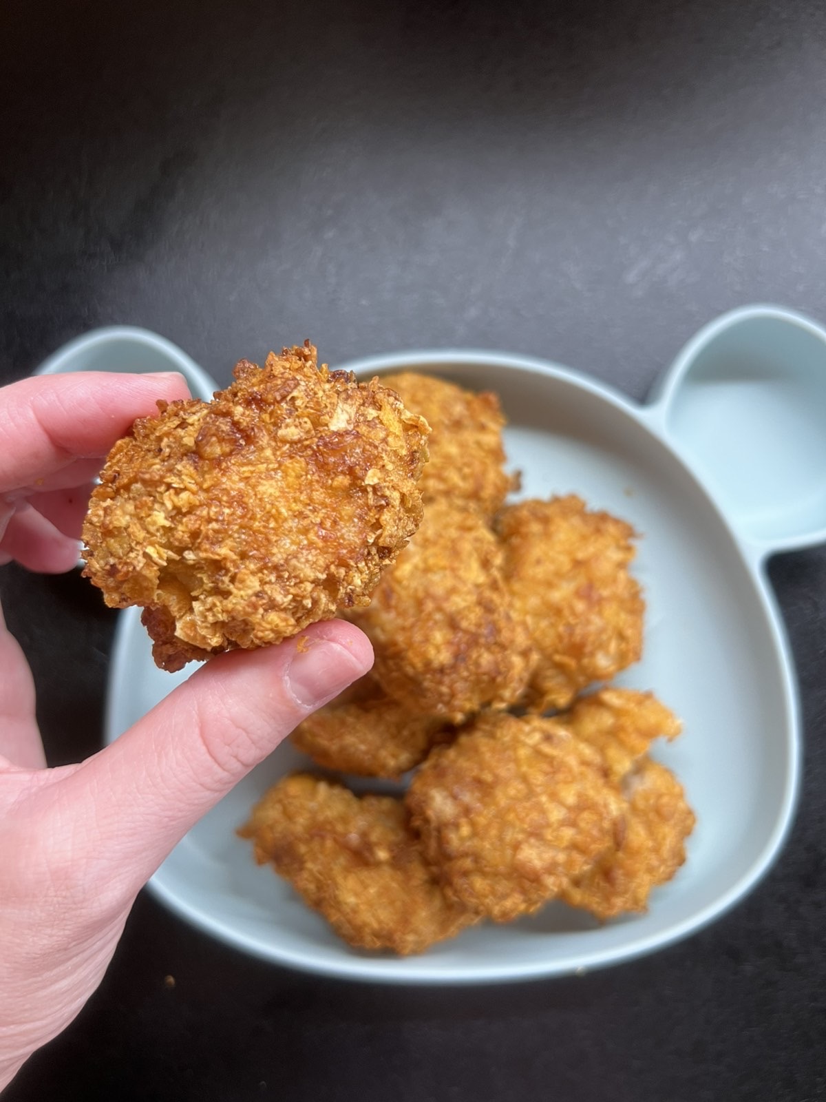 3. Βουτάς τα μπαλάκια στο αυγό κι έπειτα στα τριμμένα κορν φλεικς.